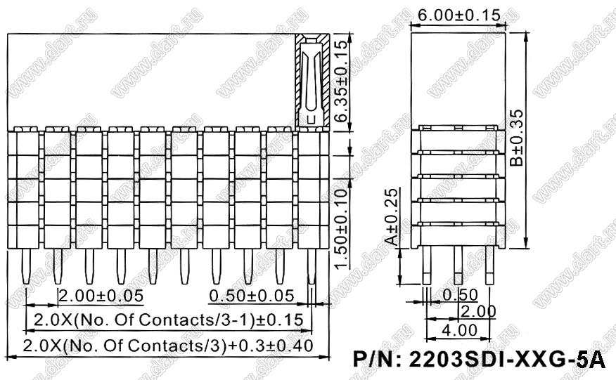 Розетки прямые трехрядные с увеличенным изолятором на плату для монтажа в отверстия (шаг 2,00 x 2,00 мм)