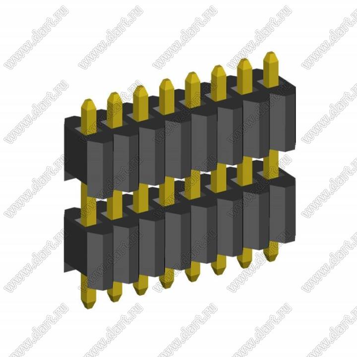 вилки штыревые открытые прямые однорядные с двойным изолятором на плату для монтажа в отверстия, шаг 1,27 x 2,54 мм