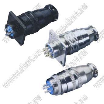 Разъемы круглые промышленные металлические (соединители низкочастотные цилиндрические) X16 серии под отверстие в прибор диаметром 16 мм применяются в электрических цепях постоянного и переменного токов, в радиоэлектронной, радиотехнической, военной или медицинской аппаратуре как соединители различного назначения как для передачи питания, так и для передачи информационных сигналов.