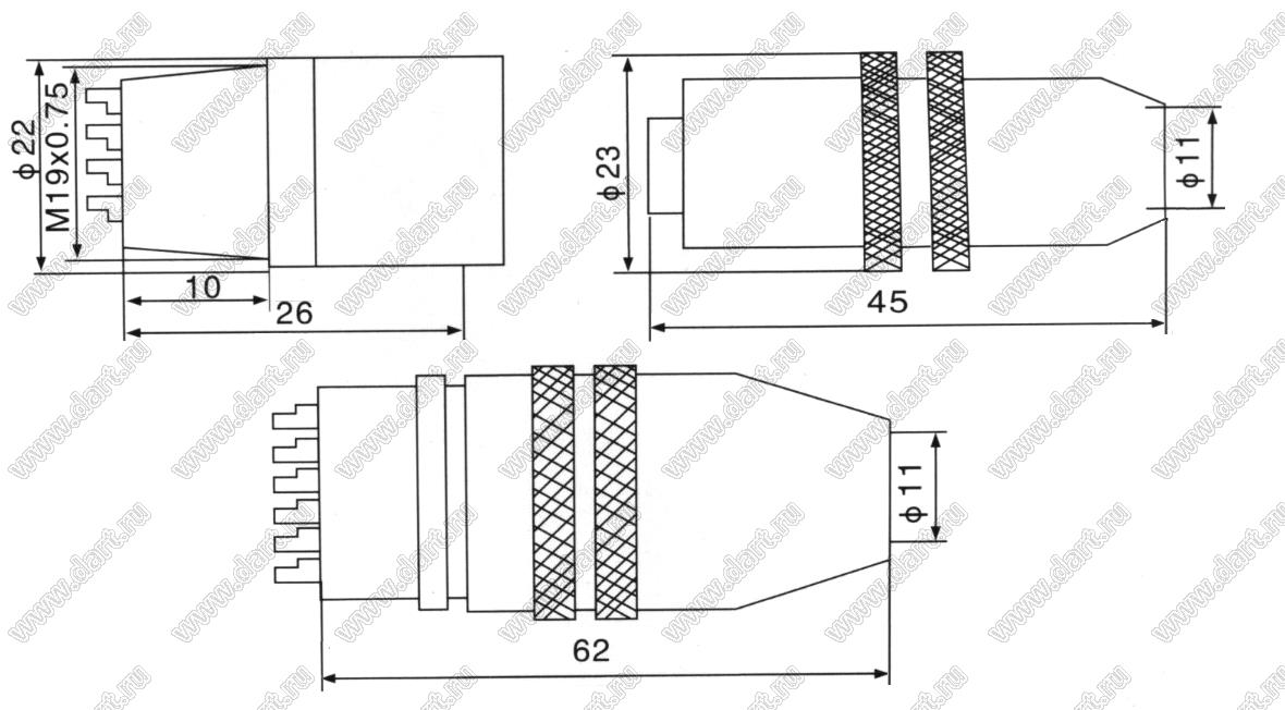 Разъемы круглые промышленные металлические (соединители низкочастотные цилиндрические) ZS19 серии под отверстие в прибор диаметром 19 мм изготавливаются в пылезащитном исполнении.