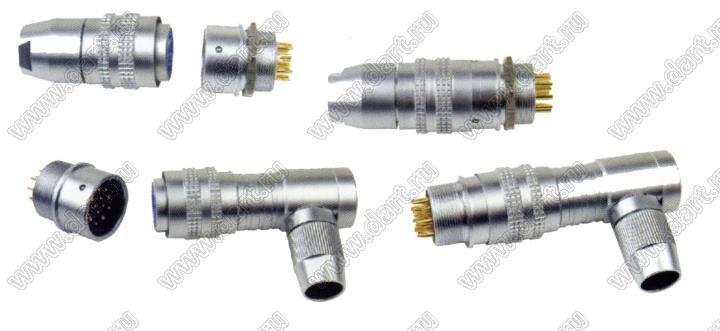 Разъемы круглые промышленные металлические (соединители низкочастотные цилиндрические) ZS19 серии под отверстие в прибор диаметром 19 мм изготавливаются с самозащелкивающимся соединением.