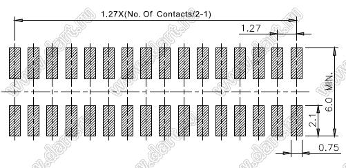 вилки штыревые открытые прямые двухрядные на плату для поверхностного (SMD) монтажа с захватом, шаг 1,27x1,27 мм