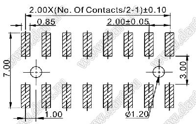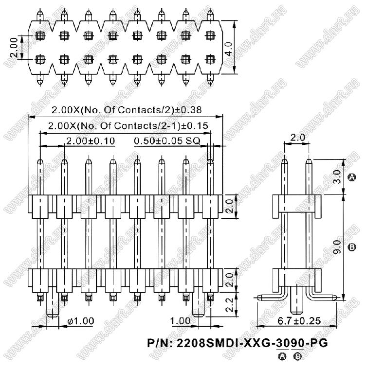 Вилки штыревые открытые прямые двухрядные с двойным изолятором с направляющими на плату для поверхностного (SMD) монтажа (шаг 2,00 x 2,00 мм)