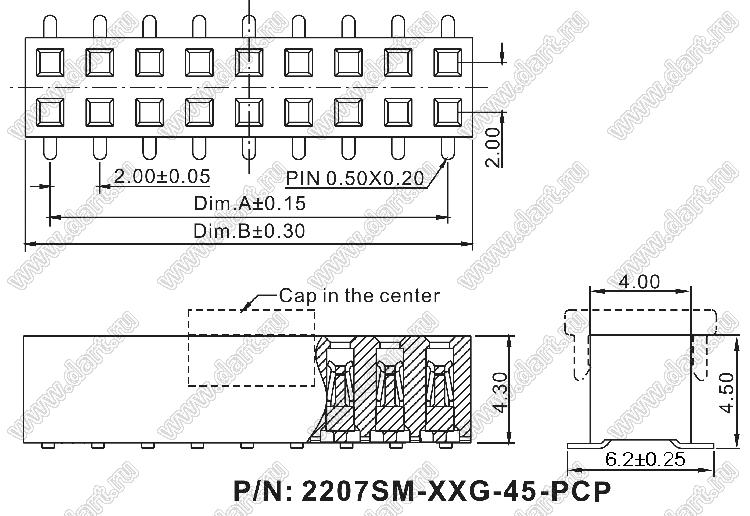 2207SM-22G-45-PCP (2x11) (PBD2-22SM, Molex 78788-2223) |