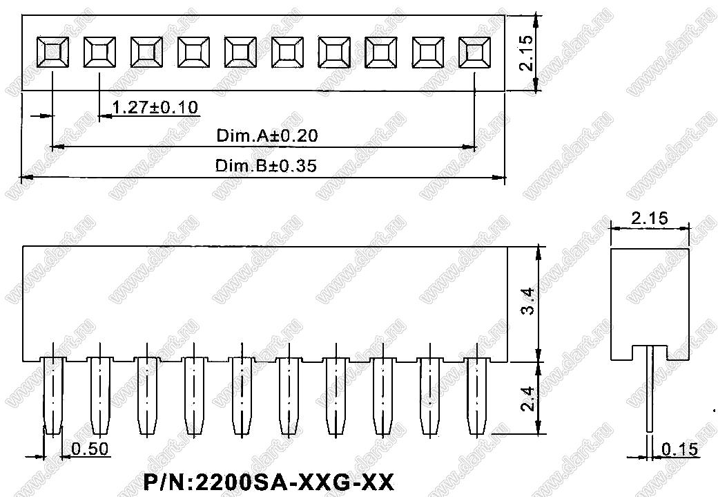 Шаг выводов P: 1,27 мм