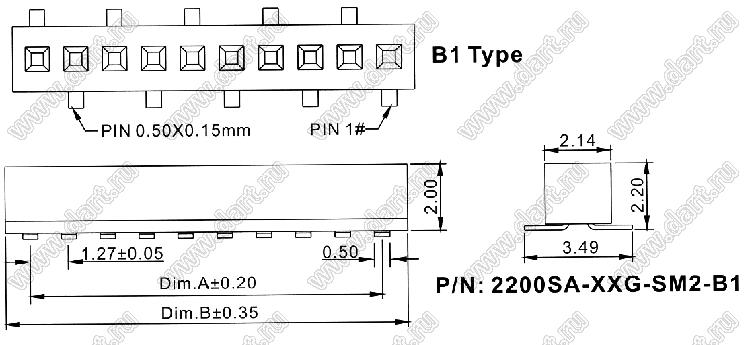 2200SA-02G-SM2-B1 розетка прямая однорядная (гнездо) для поверхностного (SMD) монтажа на плату; P=1,27мм; 2-конт. 67367 2200SA-02G-SM2-B1 2   звоните звоните