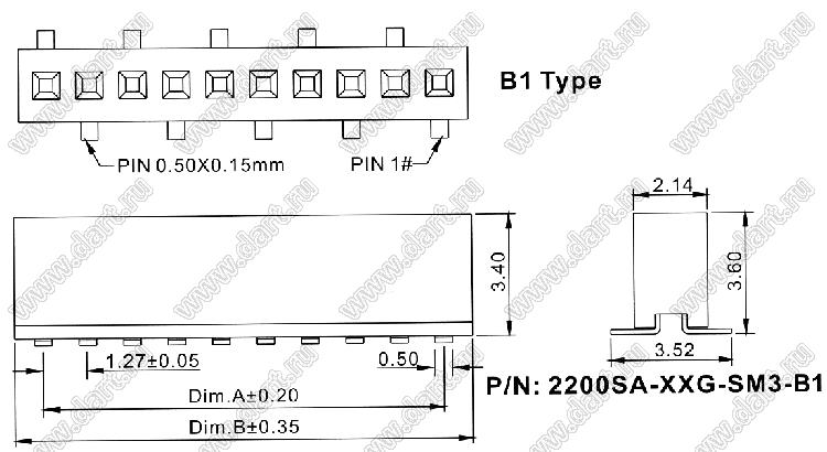 Шаг выводов P: 1,27 мм
