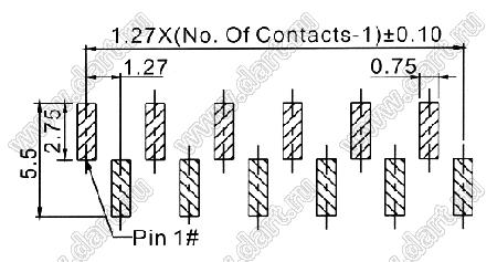 вилки штыревые открытые прямые однорядные для поверхностного (SMD) монтажа на плату, шаг 1,27 x 2,54 мм, тип 2
