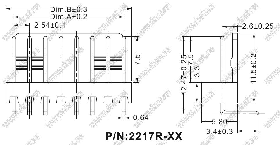 Условия поставки вилок угловых однорядных на плату для выводного монтажа серии A2541-xxAW (2217R-xx, WF-xxR) уточняйте у наших менеджеров.