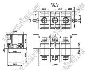 Клеммники барьерные KF67-27.0 серии, двухсторонние зажимы, шаг 27.00 мм, корпус с монтажными ушами предназначены для подсоединение проводов в силовых цепях. Конструкция соответствует международным стандартам IEC60998, UL1059, UL486E, CSA C22.2 No.158. Условия поставки барьерных клеммников KF67-27.0 серии уточняйте у наших менеджеров.