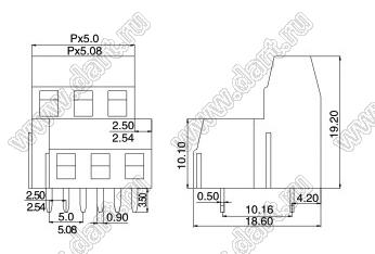 Каталог > Электронные компоненты, радиодетали > Клеммники (колодки клеммные) > Клеммники винтовые для монтажа в отверстия печатных плат > Винтовые клеммники (шаг 5,0 мм) > KF127A-5.0 (DG127A-5.0) серия