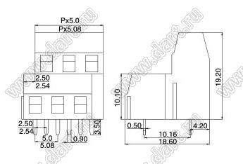 Каталог > Электронные компоненты, радиодетали > Клеммники (колодки клеммные) > Клеммники винтовые для монтажа в отверстия печатных плат > Винтовые клеммники (шаг 5,0 мм) > KF127B-5.0 (DG127B-5.0) серия