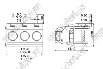 Каталог > Электронные компоненты, радиодетали > Клеммники (колодки клеммные) > Клеммники винтовые для монтажа в отверстия печатных плат > Винтовые клеммники (шаг 5,0 мм) > KF128R-5.0 (DG128R-5.0) серия