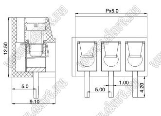 Каталог > Электронные компоненты, радиодетали > Клеммники (колодки клеммные) > Клеммники винтовые для монтажа в отверстия печатных плат > Винтовые клеммники (шаг 5,0 мм) > KF300-5.0 (DG300-5.0) серия
