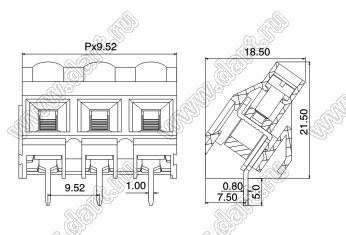 Клеммники винтовые, однорядные, с входами проводов под углом 45 град, шаг 9,52 мм