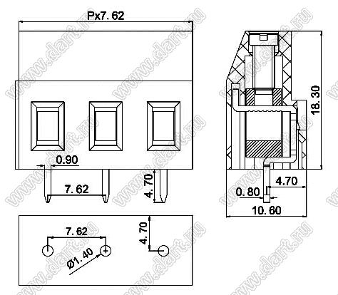 Каталог > Электронные компоненты, радиодетали > Клеммники (колодки клеммные) > Клеммники винтовые для монтажа в отверстия печатных плат > Винтовые клеммники (шаг 7,62 мм) > KF129-7.62 (DG129-7.62) серия