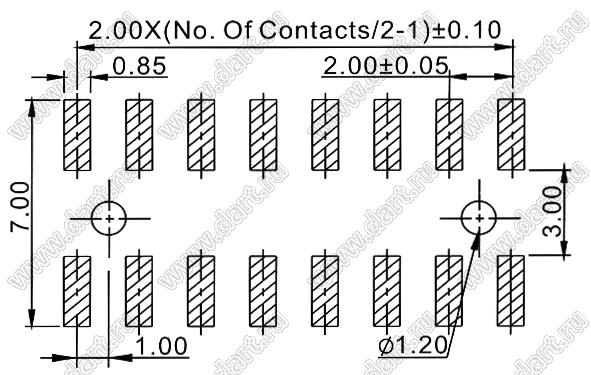 Вилки штыревые открытые прямые двухрядные с направляющими на плату для поверхностного (SMD) монтажа (шаг 2,00 x 2,00 мм)