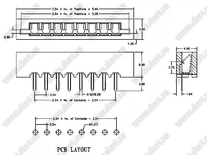 Шаг выводов P: 2,54 мм