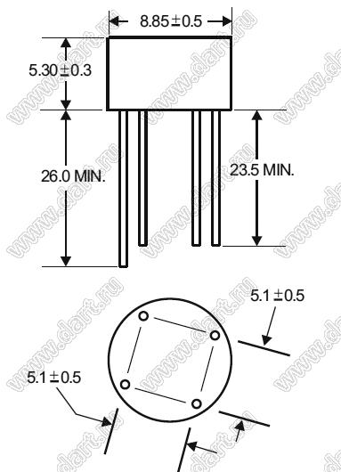 Диоды в диодных мостах серии 2W005...2W10 работают в одинаковом тепловом режиме, что уменьшает вероятность выхода из строя одного диода. Также преимуществом диодных мостов серии 2W005...2W10 является простота монтирования на плате.