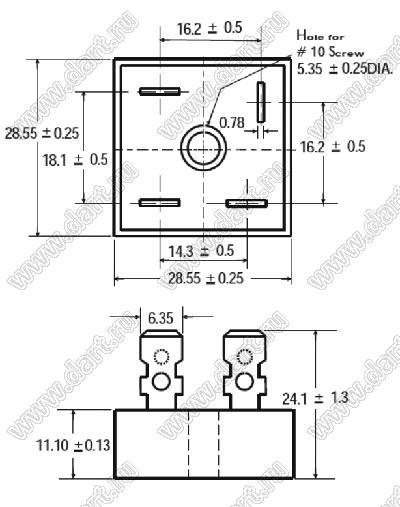 Диодные мосты для быстрого монтажа на радиатор серии KBPC50005...KBPC5010 в корпусе KBPC представляют собой диодные сборки монолитной конструкции, которые дешевле и меньше по объему, чем набор отдельных диодов. Диоды в мостах серии KBPC50005...KBPC5010 подобраны на фабрике по параметрам, максимально аналогичным друг другу.