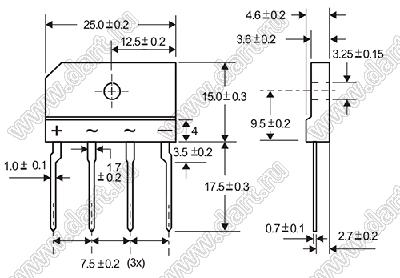мосты диодные для выводного монтажа на плату и радиатор в корпусе KBJ на ток до 4,0 A