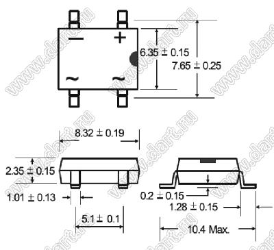 Диодные мосты для поверхностного (SMD) монтажа на плату серии DB101S...DB107S в корпусе DIP-S представляют собой диодные сборки монолитной конструкции, которые дешевле и меньше по объему, чем набор отдельных диодов. Диоды в мостах серии DB101S...DB107S подобраны на фабрике по параметрам, максимально аналогичным друг другу.