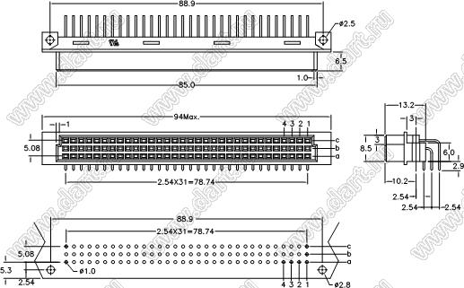 Каталог > Электронные компоненты, радиодетали > Разъёмы (соединители, переходники) > Соединители межплатные DIN 41612 > DIN 41612 розетки угловые
