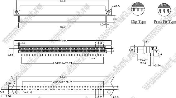 9001-A44321C00A (DIN 41612-32AB-FR) |