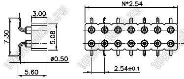 6) Покрытие гнезд: 1: лужение 150µ" 2: лужение 200µ" 3: напыление золотом 4: золочение 3µ" 5: золочение 10µ" 6: золочение 15µ"