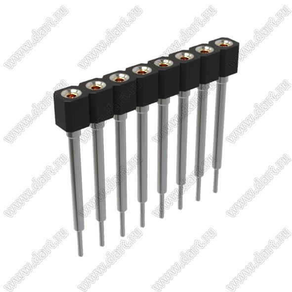 гнезда цанговые прямые однорядные приподнятые для выводного монтажа, шаг 2,54 мм, тип 2, L=14,60 мм