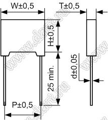 CAPFILM X2 0.33uF/275VAC (26.5x16.5x7.0mm) P=22.5mm |