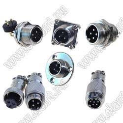Разъемы круглые промышленные металлические (соединители низкочастотные цилиндрические) GX12 серии под отверстие в прибор диаметром 12 мм изготавливаются в пылезащитном исполнении.