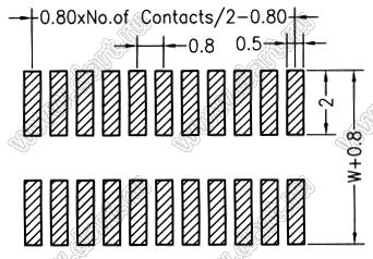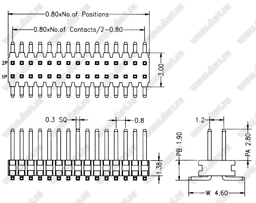 вилки штыревые открытые прямые двухрядные на плату для поверхностного (SMD) монтажа, шаг 0,80 x 1,20 мм