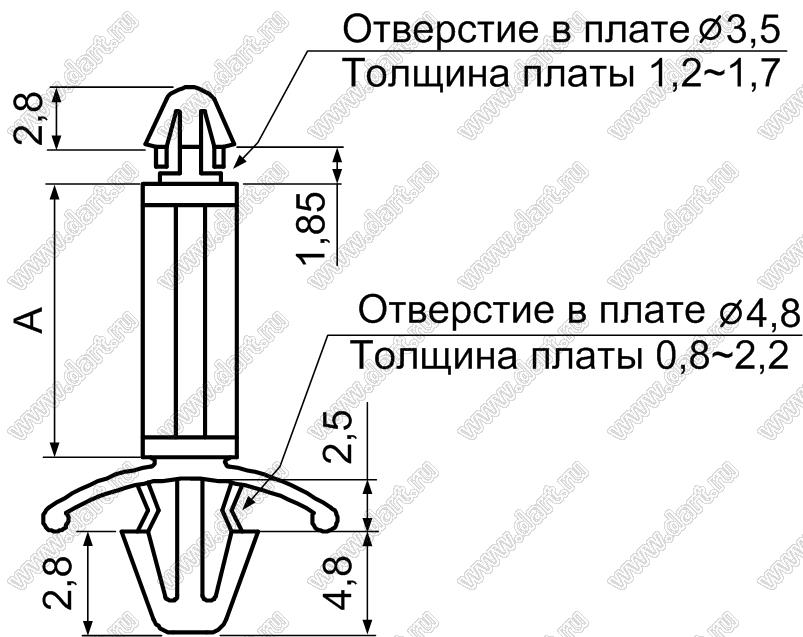 Серия фиксаторов плат нейлоновых предназначена для крепления печатной платы на постоянном расстоянии от шасси. Диаметр отверстия в плате 3,5 мм, толщина платы 1,2~1,7 мм, диаметр отверстия в шасси 4,8 мм, толщина шасси 0,8~2,0 мм. Фиксаторы этой серии поставляются со склада в Москве и под заказ с фабрики со сроком производства 2-3 недели, плюс доставка до Москвы. Условия поставки уточняйте у менеджеров.