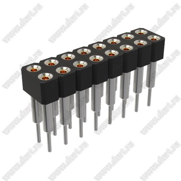 гнезда цанговые прямые двухрядные приподнятые для выводного монтажа, шаг 2,54x2,54 мм, тип 1, L=9,00 мм