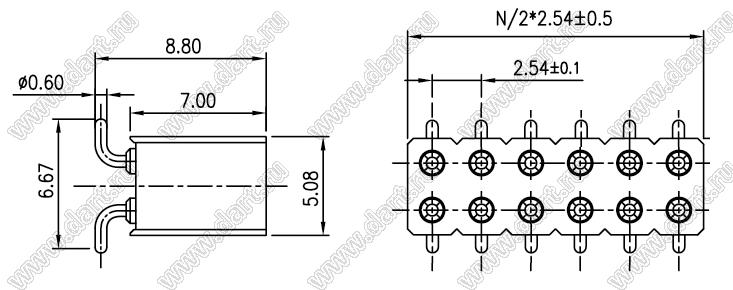 Шаг выводов P: 2,54x2,54 мм