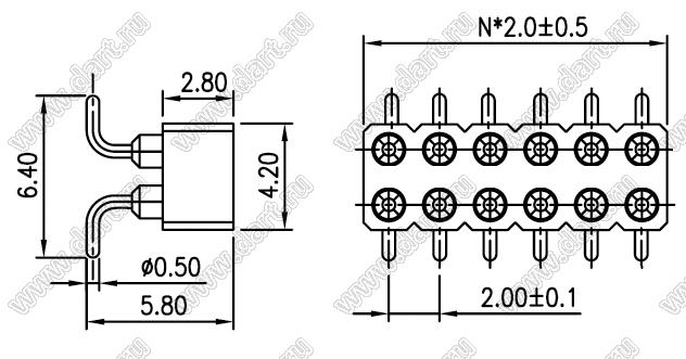 Шаг выводов P: 2,00x2,00 мм