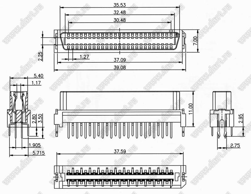 BL6411-F050 серия: розетки SCSI, полностью пластиковый корпус, DIP
