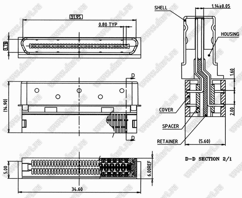 Каталог > Электронные компоненты, радиодетали > Разъёмы (соединители, переходники) > Разъемы SCSI > BL6332-M068SIxxMNA01 серия