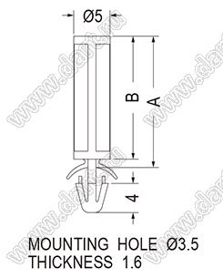 Диаметр отверстия в шасси d отв.: 3,5 мм Толщина шасси t: 1,6 мм Материал: нейлон-66 (UL) Класс огнестойкости: 94V-0 Цвет: натуральный |