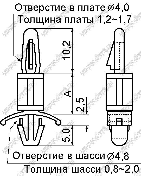 Серия фиксаторов плат нейлоновых предназначена для крепления печатной платы на постоянном расстоянии от шасси. Диаметр отверстия в плате 4,0 мм, толщина платы 1,2~1,7 мм, диаметр отверстия в шасси 4,8 мм, толщина шасси 0,8~2,0 мм. Фиксаторы этой серии поставляются со склада в Москве и под заказ с фабрики со сроком производства 2-3 недели, плюс доставка до Москвы. Условия поставки уточняйте у менеджеров.