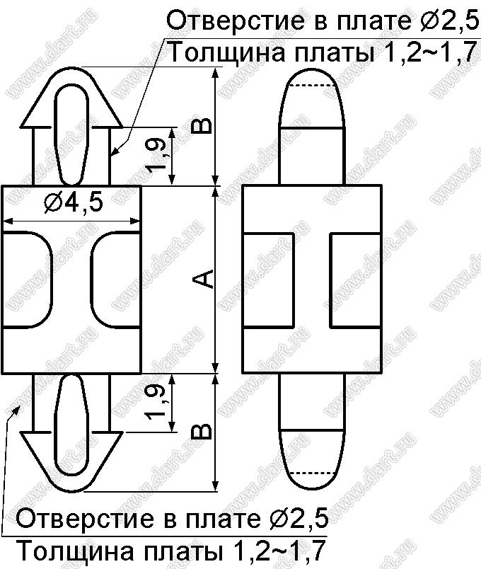 Серия фиксаторов плат нейлоновых предназначена для крепления печатной платы на постоянном расстоянии от шасси. Диаметр отверстия в плате 2,5 мм, толщина платы 1,2~1,7 мм, диаметр отверстия в шасси 2,5 мм, толщина шасси 1,2~1,7 мм. Фиксаторы этой серии поставляются со склада в Москве и под заказ с фабрики со сроком производства 2-3 недели, плюс доставка до Москвы. Условия поставки уточняйте у менеджеров.