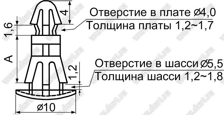 Серия фиксаторов плат нейлоновых предназначена для крепления печатной платы на постоянном расстоянии от шасси. Диаметр отверстия в плате 4,0 мм, толщина платы 1,2~1,7 мм, диаметр отверстия в шасси 5,5 мм, толщина шасси 1,2~1,8 мм. Фиксаторы этой серии поставляются со склада в Москве и под заказ с фабрики со сроком производства 2-3 недели, плюс доставка до Москвы. Условия поставки уточняйте у менеджеров.