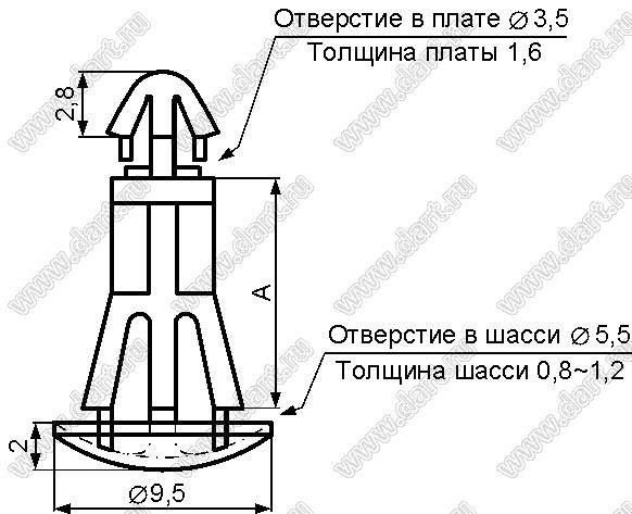 Диаметр отверстия в шасси d отв.: 5,5 мм