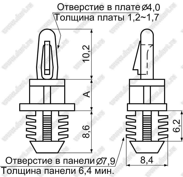 Диаметр отверстия в шасси d отв.: 7,9 мм