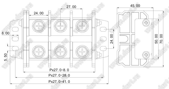 Каталог > Электронные компоненты, радиодетали > Клеммники (колодки клеммные) > Клеммники барьерные > Барьерные клеммники (шаг 27,0 мм) > TD150-27.0 серия