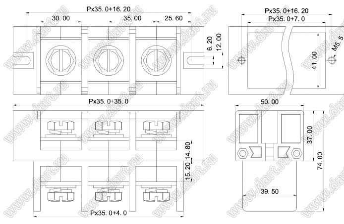 Каталог > Электронные компоненты, радиодетали > Клеммники (колодки клеммные) > Клеммники барьерные > Барьерные клеммники (шаг 35,0 мм) > KF77S-35.0 серия