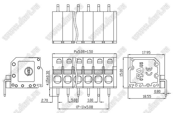 Клеммники нажимные KF450R-5.08 серии с шагом 5.08 мм, угловые, предназначены для монтажа в отверстия печатних плат. Конструкция соответствует международным стандартам IEC60998, UL1059, UL486E, CSA C22.2 No.158. Условия поставки клеммников нажимных KF450R-5.08 серии уточняйте у наших менеджеров.