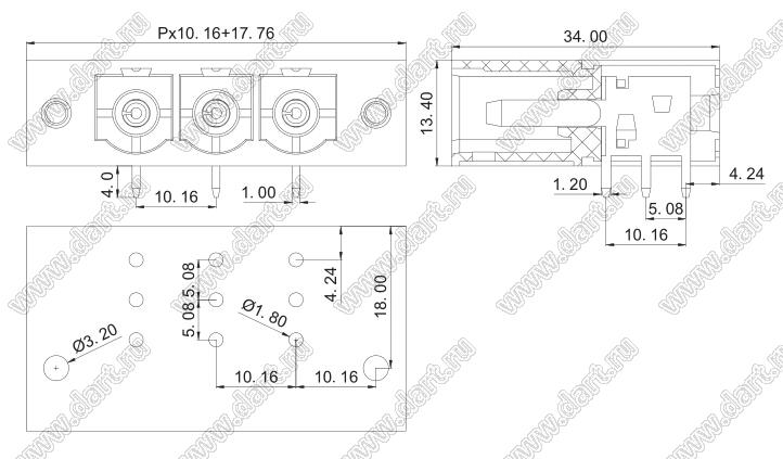 вилки на плату угловые, с отверстиями под крепежные винты и закладные гайки, шаг 10,16 мм