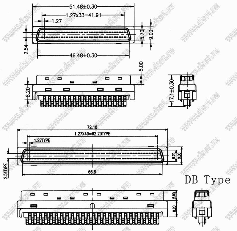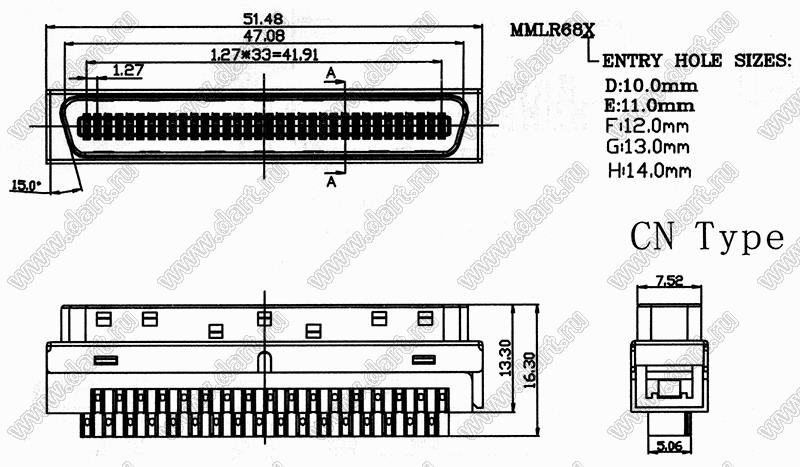 BL6330-M серия: вилки прямые SCSI HPDB DB HALF PITCH RIBBON CONNECTOR